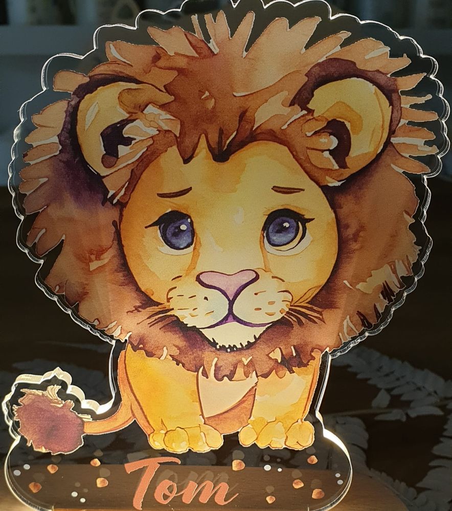 Gute-Nacht-Lampe Silhouette LÖWE personalisiert - LED Nachtlicht, ein zauberhaftes Geschenk für Kinder